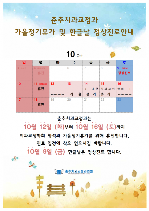 일정 확인하셔서 귀한 걸음 헛되지 않도록 부탁드리며, 교정응급상황시 다음과 같은 처치 부탁드립니다.